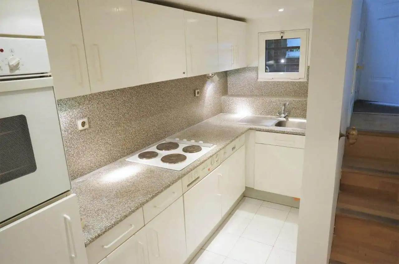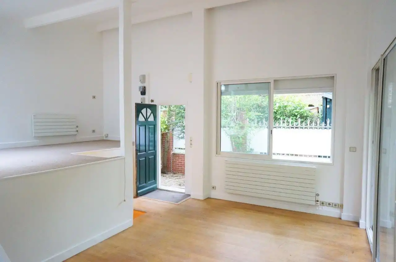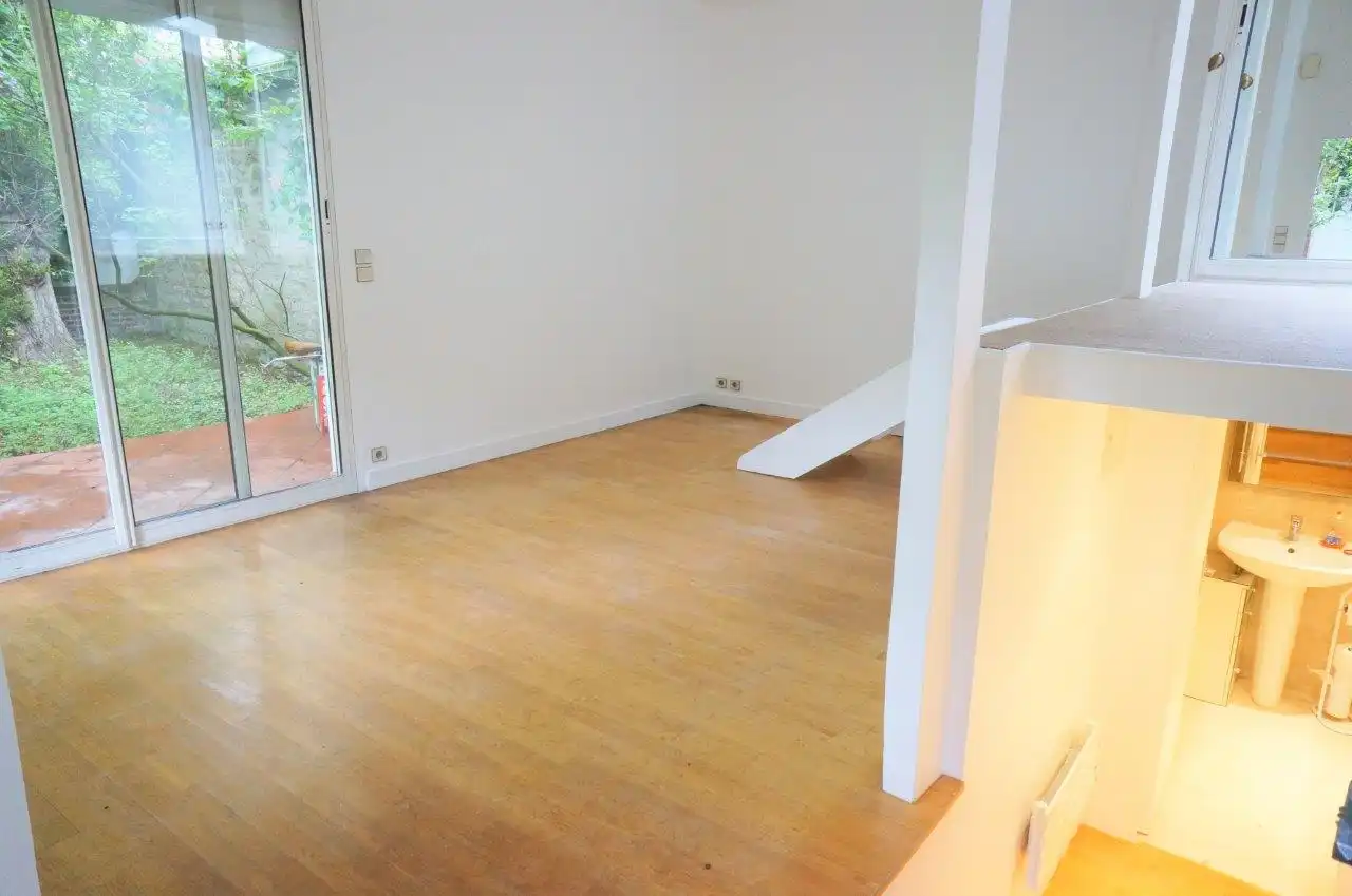 Abundant light enters from large windows and skylight.  The garden property offers privacy and nature close to the abundant shops, restaurants and public transport available in central Neuilly. The property is sequestered in a vast private garden space located between two brick and stone buildings, the private house is surrounded by a gated brick fence which marks the limit of the 96 m2 of garden that belongs exclusively to the property, ensuring that the sounds of birds and nature are all you hear even as you are conveniently located near all the conveniences of urban existence.