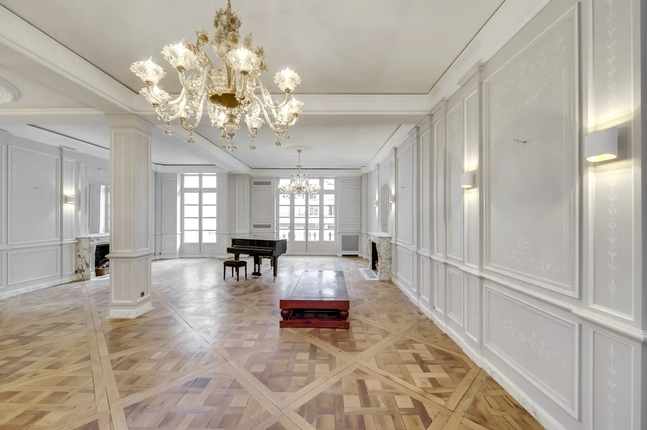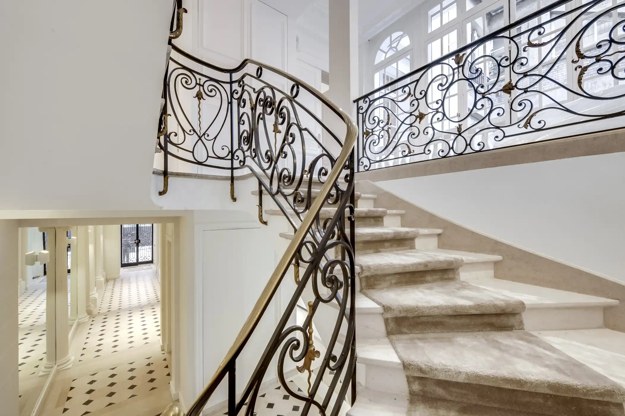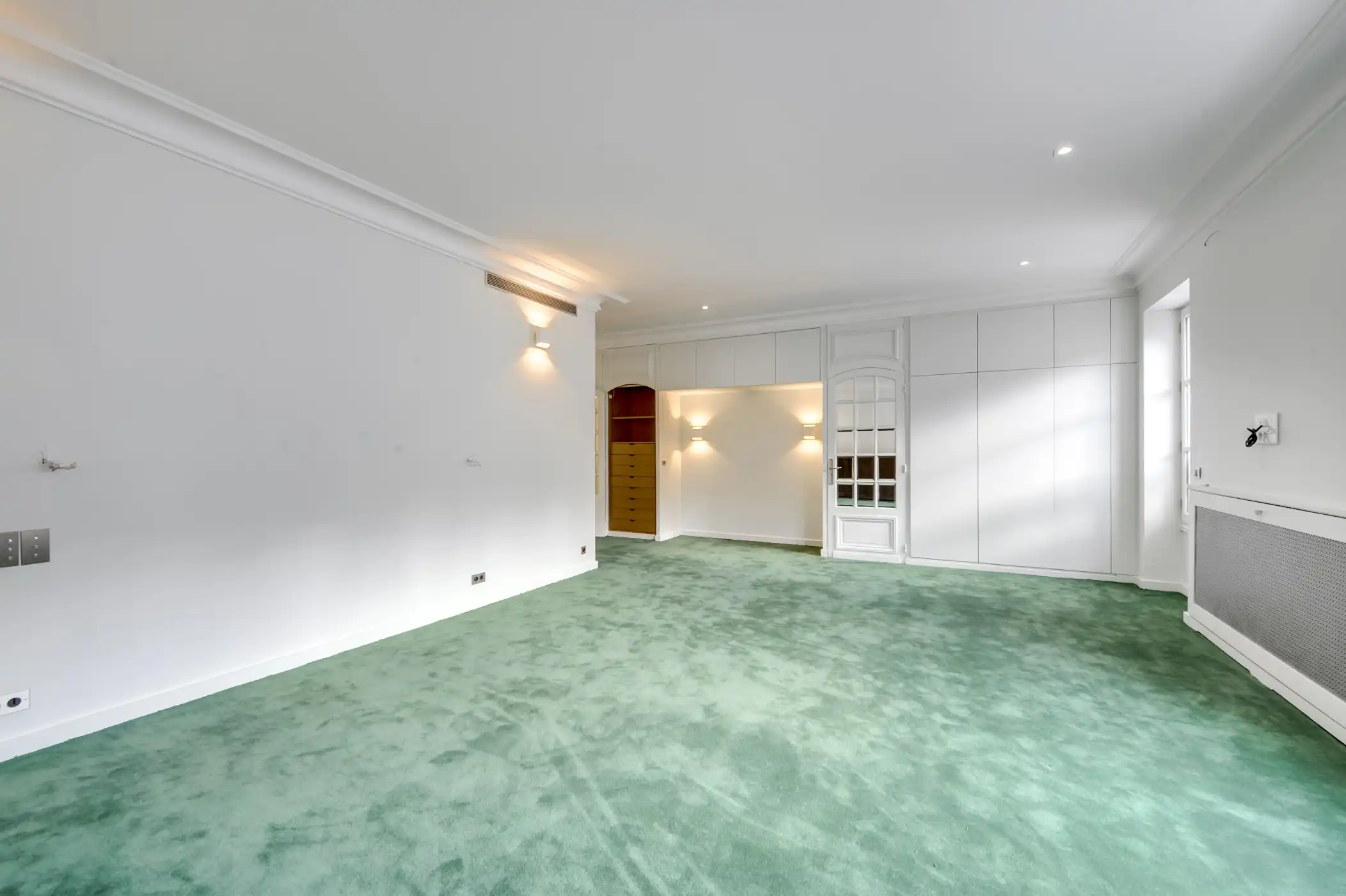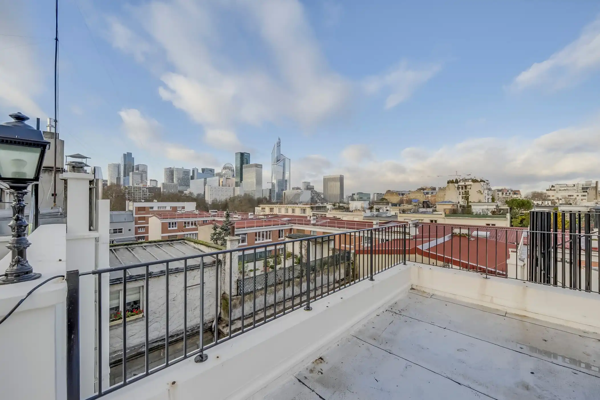On the 1st floor (2nd floor American) there is a magnificent reception living room with pointe de Versailles wood floors, opening on to another balcony, a movie theater and 2 WC.   The 2nd floor (3rd floor American) offers three beautiful suites, two with balconies 3,09m2 and 3,16m2 with 2 large bathrooms and extensive built-in storage. On the top floor, a gorgeous master suite opens onto a terrace of 58,42m2 with a dressing room and sumptuous en-suite bath.