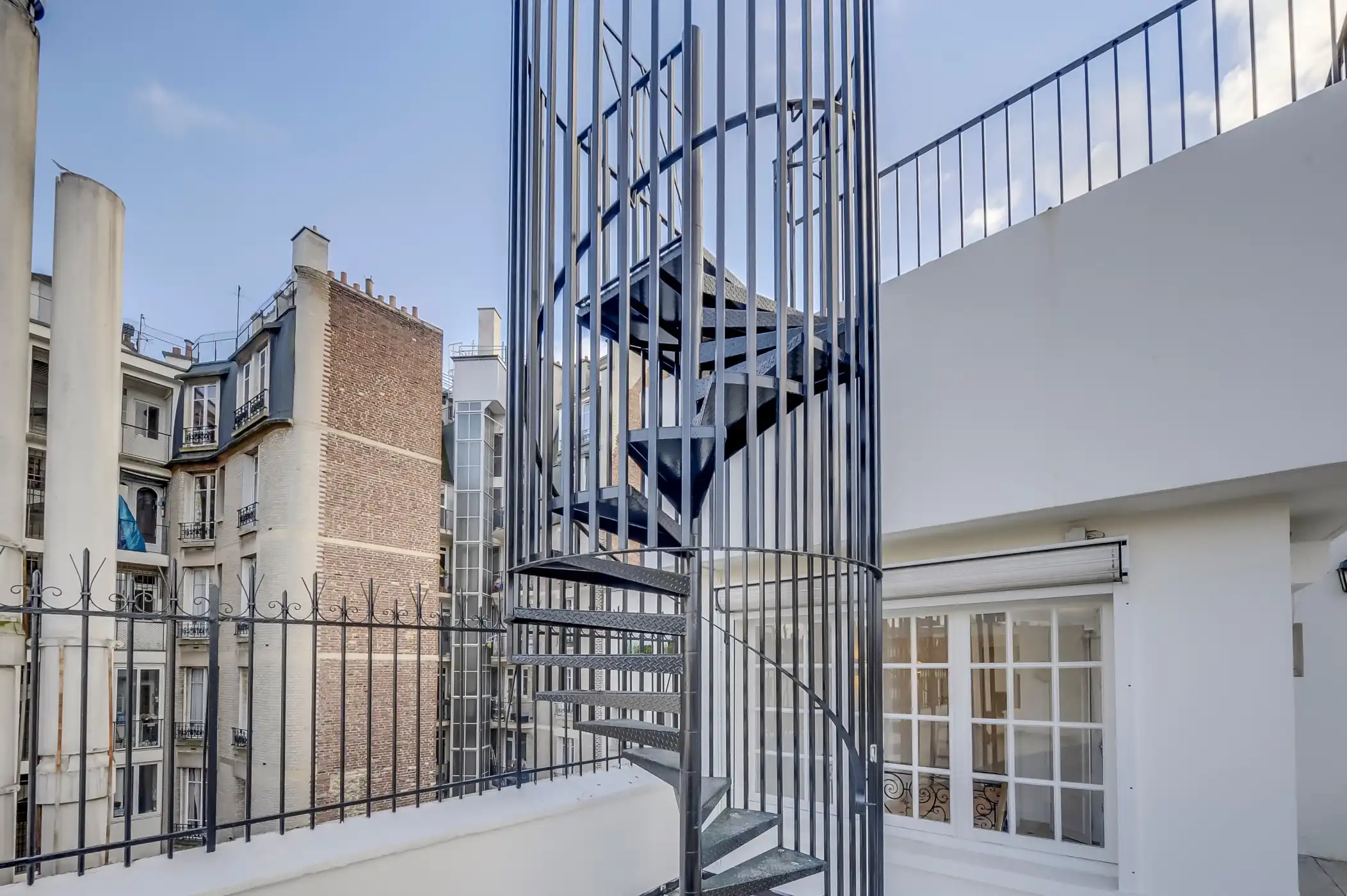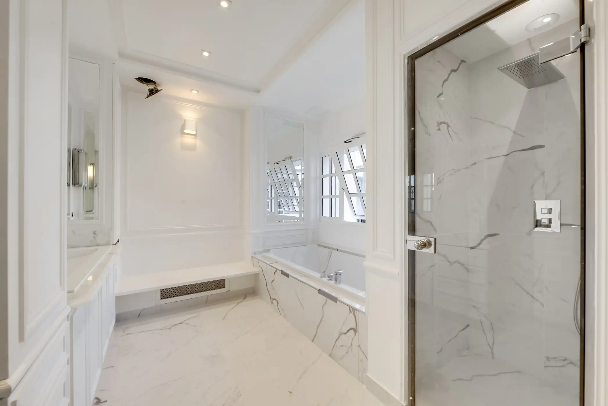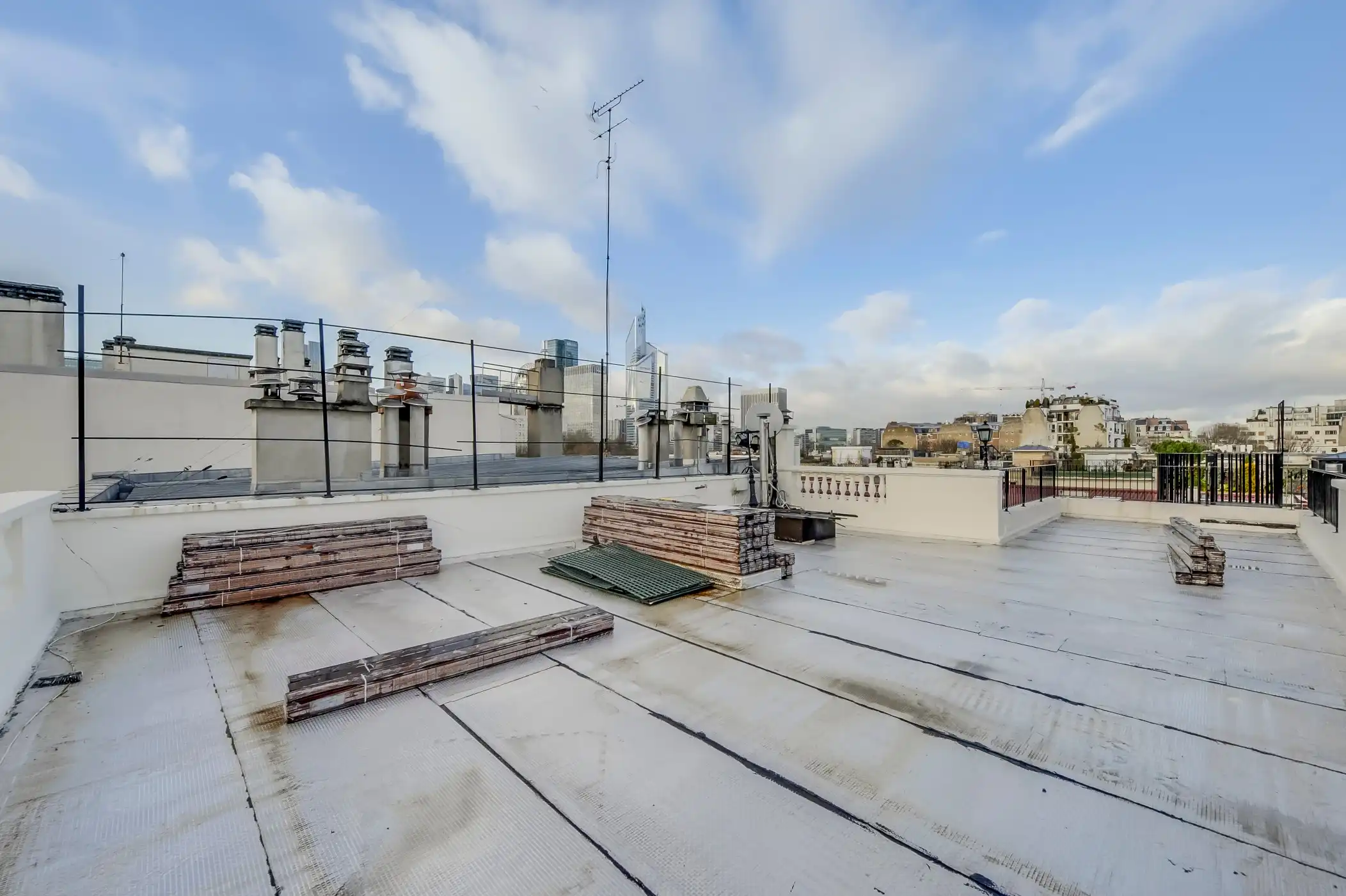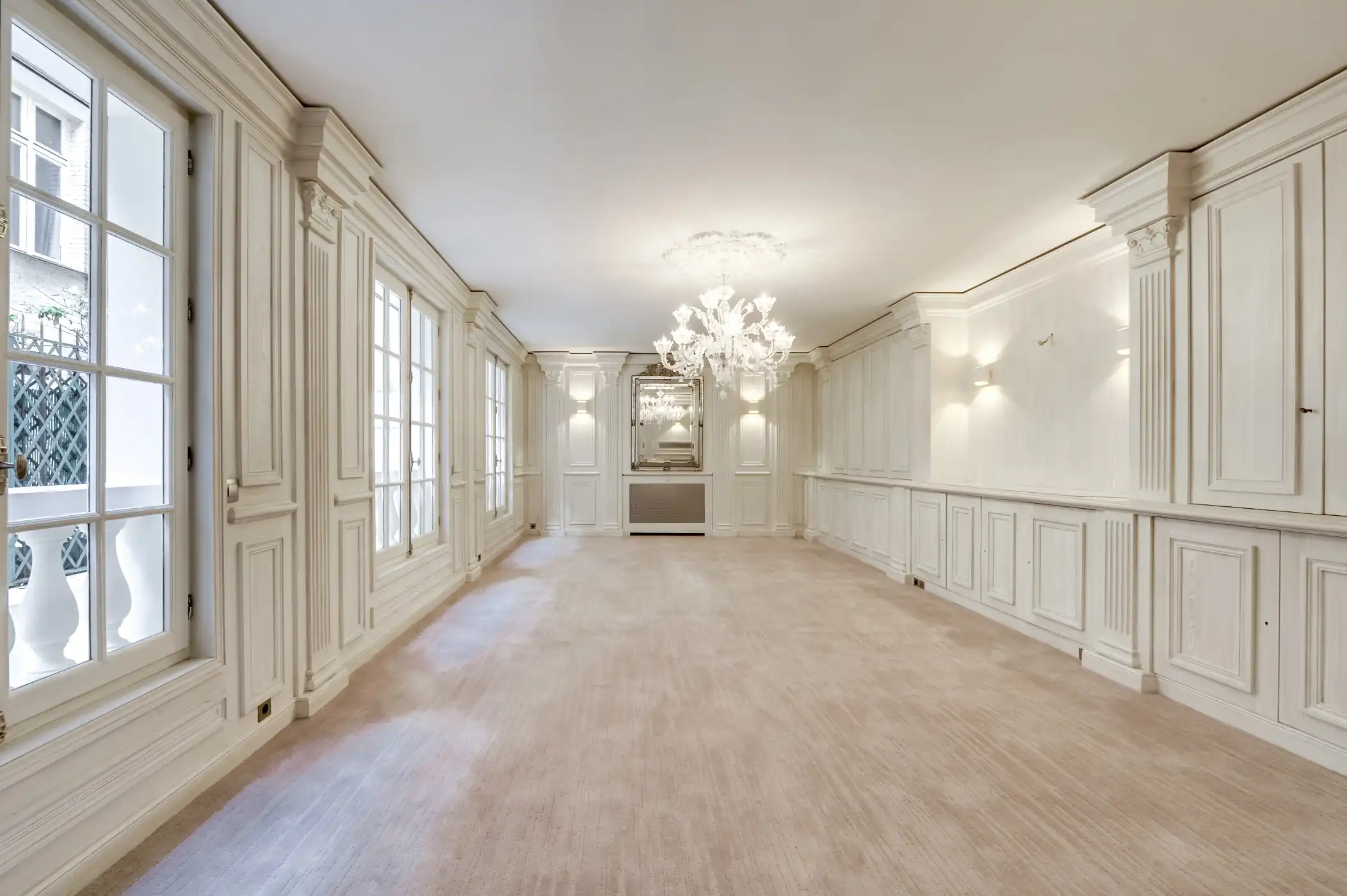 On the 1st floor (2nd floor American) there is a magnificent reception living room with pointe de Versailles wood floors, opening on to another balcony, a movie theater and 2 WC.   The 2nd floor (3rd floor American) offers three beautiful suites, two with balconies 3,09m2 and 3,16m2 with 2 large bathrooms and extensive built-in storage. On the top floor, a gorgeous master suite opens onto a terrace of 58,42m2 with a dressing room and sumptuous en-suite bath.
