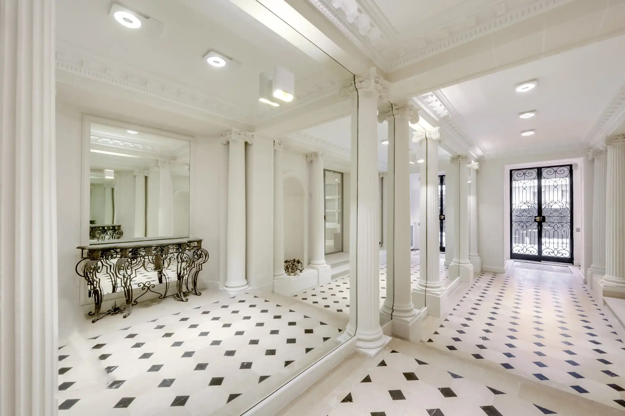 Located on a quiet residential street in prestigious the prestigious Neuilly sur Seine area of Paris, we offer this magnificent mansion of 1021.46 m2 on three levels, plus a cellar and annexes.  The property features an elevator, as well as a beautiful iron staircase with forged iron railing.