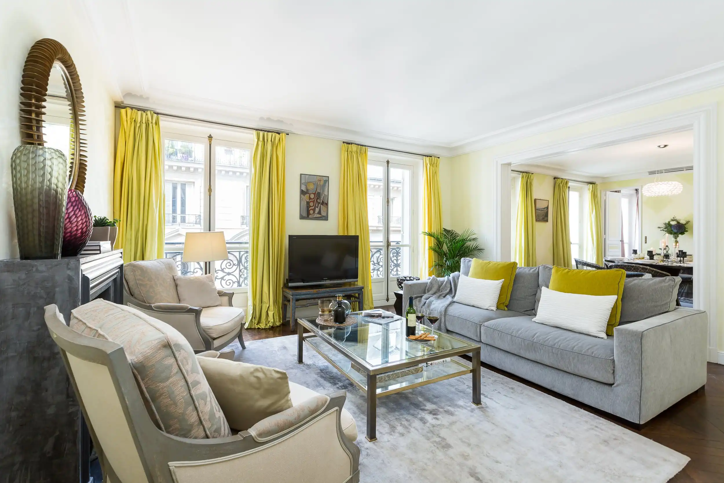 Classic 19th century Haussmann-style building with high ceilings, crown moldings and original wood floors. 4th floor (5th floor US) with elevator. South and west facing from the bright and spacious living room, with open views onto the delightful street. Renovated and decorated with perfect attention to preserving its historical charm, the property boasts wonderfully modern kitchen and baths. A full-size gourmet kitchen equipped with top-tier appliances is ready for entertaining guests with your own cuisine or a private personal chef available through the concierge. Full climate-control, including central air conditioning, ensure that your apartment is always right for you to relax and enjoy.