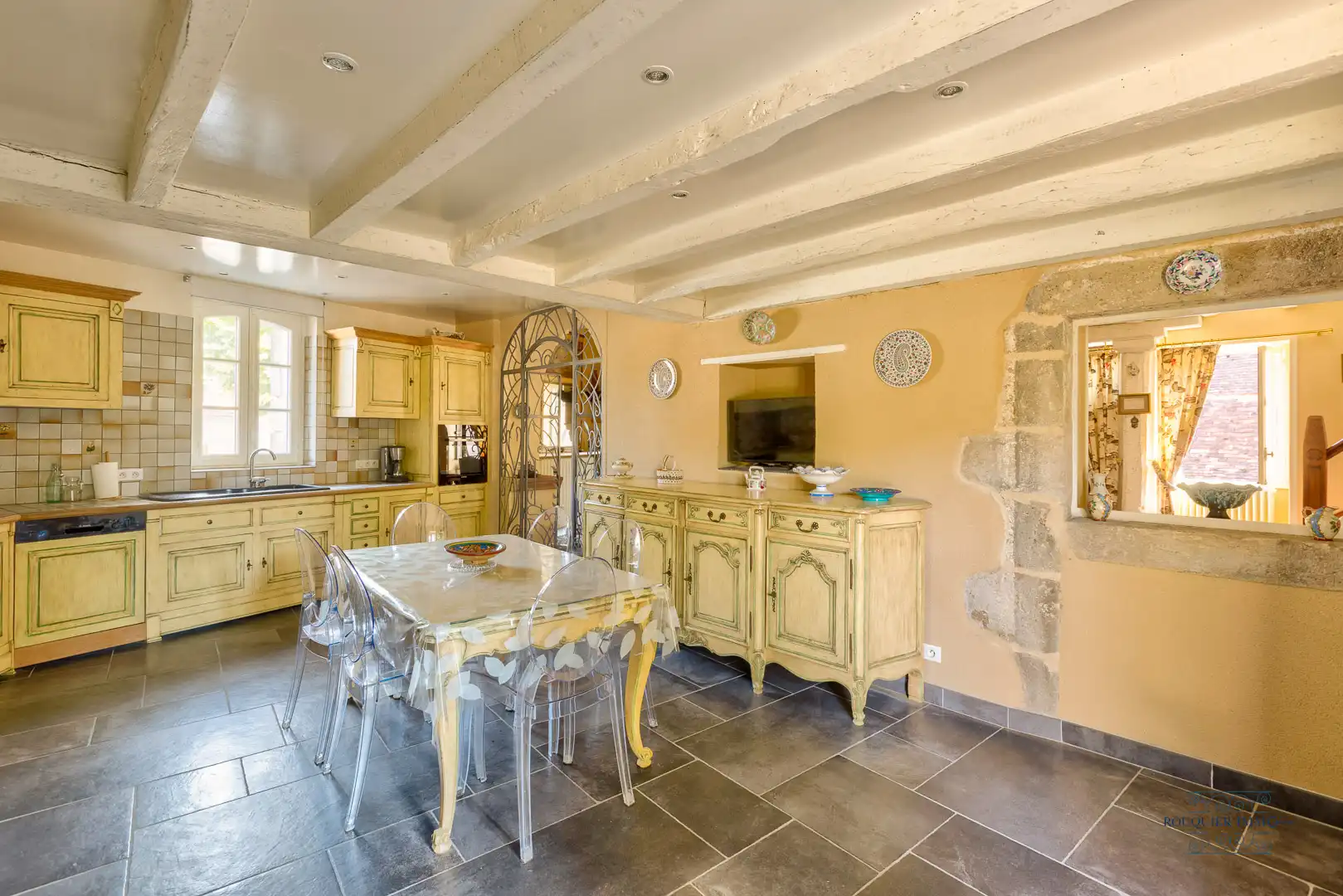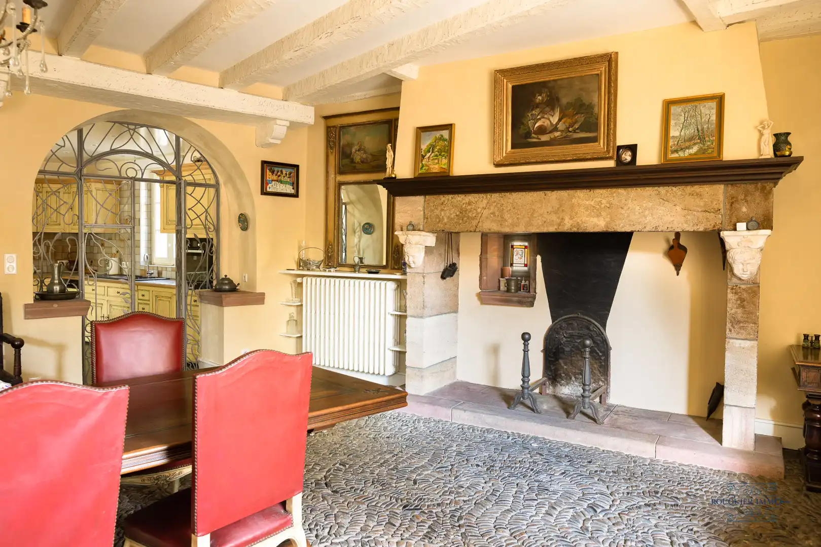 Located in Beaulieu-Sur-Dordogne (19120), a village located directly on the river and classified as one of  'the most beautiful villages in France'.  A stone's throw from the town center and the shops,  this very beautiful typical Corrèze stone house is full of charm and in perfect condition. It includes a garden of approximately 300m², a large fitted kitchen with eat-in dining space, a separate additional dining room, a living room and a small secondary living room. Upstairs 4 bedrooms including two primary suites. On the 2nd floor the attic has been partially fitted out so as to have two more bedrooms and a bathroom. On the garden level, a magnificent vaulted room with an incredible volume, a shower room, cellars, garage and outbuildings. Possibility of creating an additional 5th bedroom. The house has been renovated with quality materials.