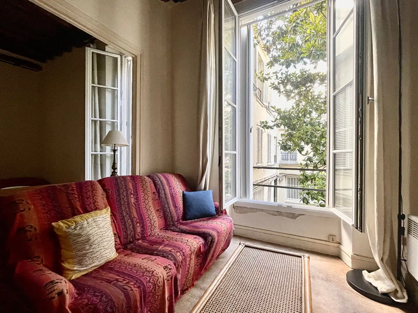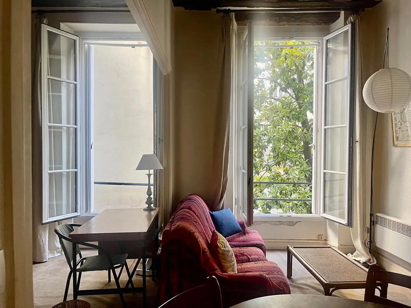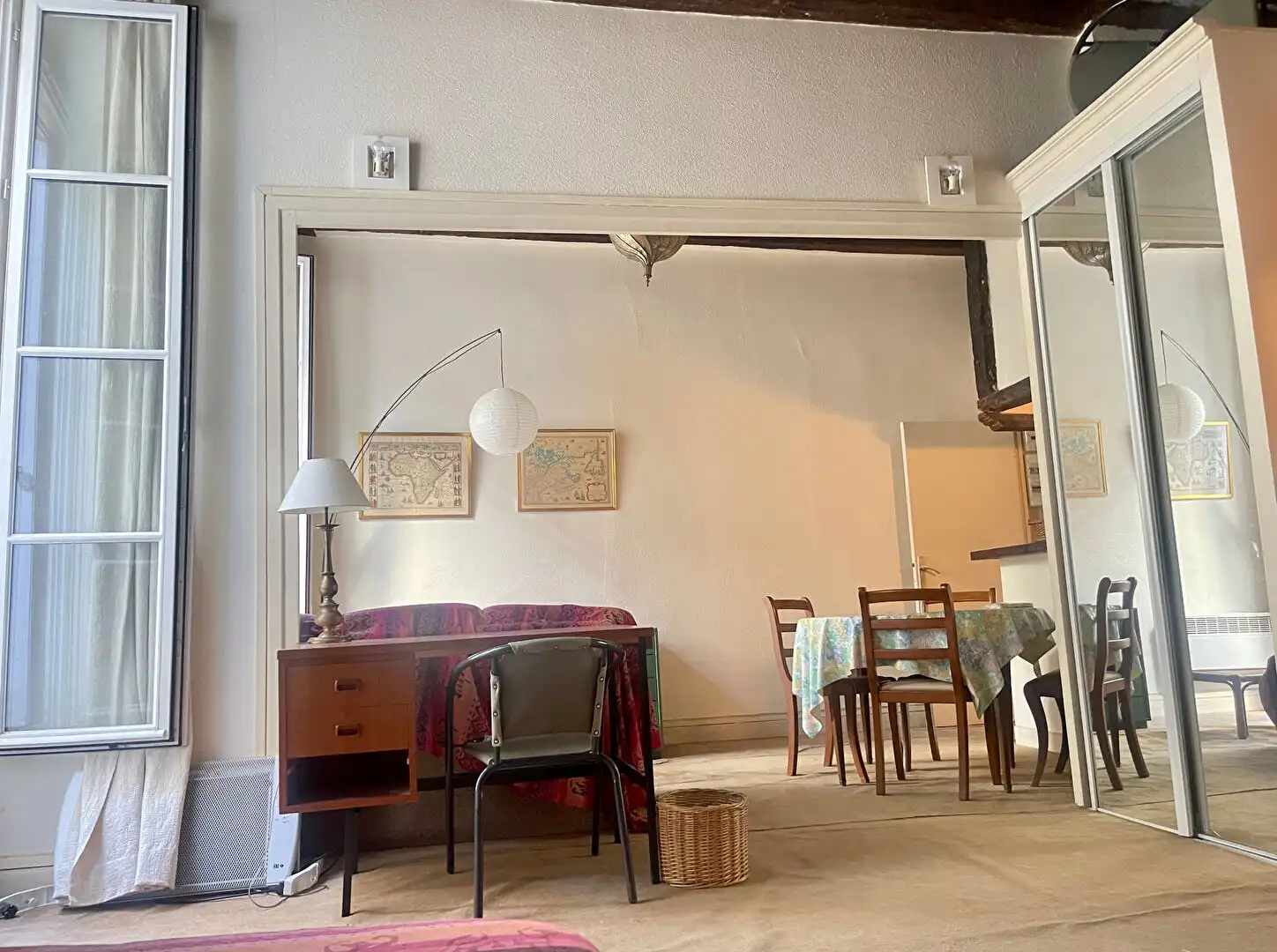 Located on the first floor (second floor American) of a typical Marais building, this large 38 m2 studio apartment overlooks a leafy courtyard.  It is comprised of an entrance hall, a living room,with open plan kitchen, and a bathroom.  There is an option of partitioning the living room to create a separate bedroom.  A cellar completes this property.  The Marais location is close to amenities and in the central, most historic part of Paris.